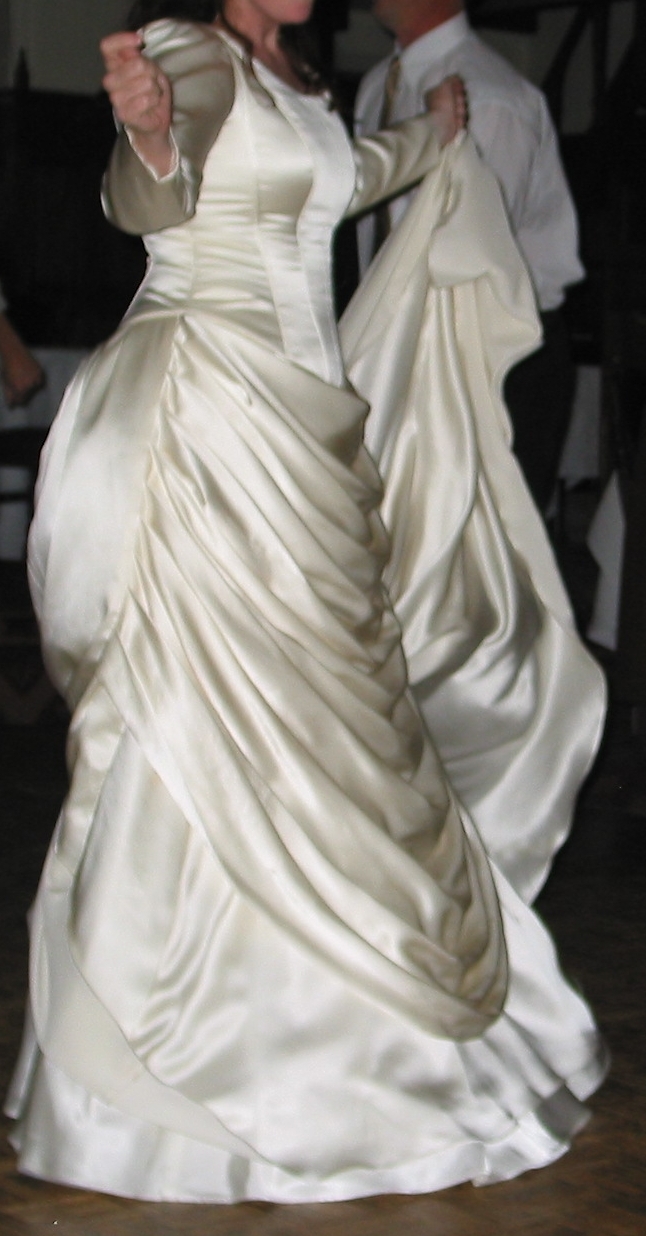 I know, I know the overskirt is too long! It mocks me in the photos. That is not a bustle, by the way, it is the aforementioned cannonball. These days, it’s an entire armory.