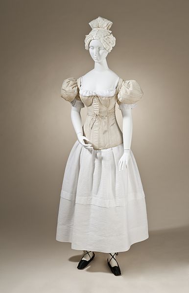 I signed up for a quarter Cannonball (13 books) with my online community, but I’ve completed it and I’m working on my half Cannonball (speaking of cannonballs, my behind is one), and, not wanting to let the 79 works I’ve read in this genre since February go to waste, I now return to Loretta Chase, who, while not my favourite romance novelist, is extremely reliable and entertaining. I’ve chosen Silk Is for Seduction because it’s about romance and fashion, specifically 1830s clothing which is particularly ridiculous. Look at what the fashionable wore under their clothing, and keep in mind that a shift, drawers, and more petticoats would be added, and that those things on her shoulders would be like wearing down pillows –