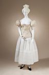 The women’s clothing is an important element in historical romance novels. The men’s clothingalways skirts around any effeteness that would be consistent with the era and is plain and elegant. With main characters who are dressmakers, Chase spends a great deal more time than usual describing and talking about clothing. She either did a lot of research or is very good at making up words. Of particular enjoyment in both Marcelline and Sophy’s books is the acknowledgement of the extremely complicated nature of a woman’s toilette. Some romance authors simply ignore these details and with a quick pull of a few buttons the heroine is fully disrobed. Julia Quinn, who writes charming, funny, and mostly chaste novels, often has the heroine wearing ONLY the dress and it annoys me every time the hero unfastens a row of buttons and BOOM! she’s naked. I wear more cannonball management layers than that and it’s 2012. Any 19th century man trying to get to the good stuff would have to get through gloves, the dress, layers of petticoats, maybe crinolines, corset, drawers, shift, shoes, garters and hose, and possibly the “sleeve plumpers” seen above, plus any outerwear, bonnet or head covering, not to mention a potential Gordian knot of a coiffure (H/T Courtney Milan). These layers could have hooks, pins, myriad buttons, and/or lacings. It was like penetrating an Eastern Bloc bureaucracy to get all the way to the woman herself. Loretta Chase includes all these details and plays them for laughs and practicality. As fashion purveyors, the Noirot sisters’ clothing is especially complicated. Marcelline actually stops Clevedon from trying to undress her at one point because they simply don’t have time. Still, these are romance novels, so the men are very experienced and at some point the heroine can’t help but notice how adept he is with her assorted fastenings and adjustments.